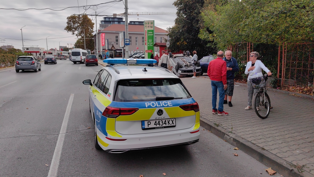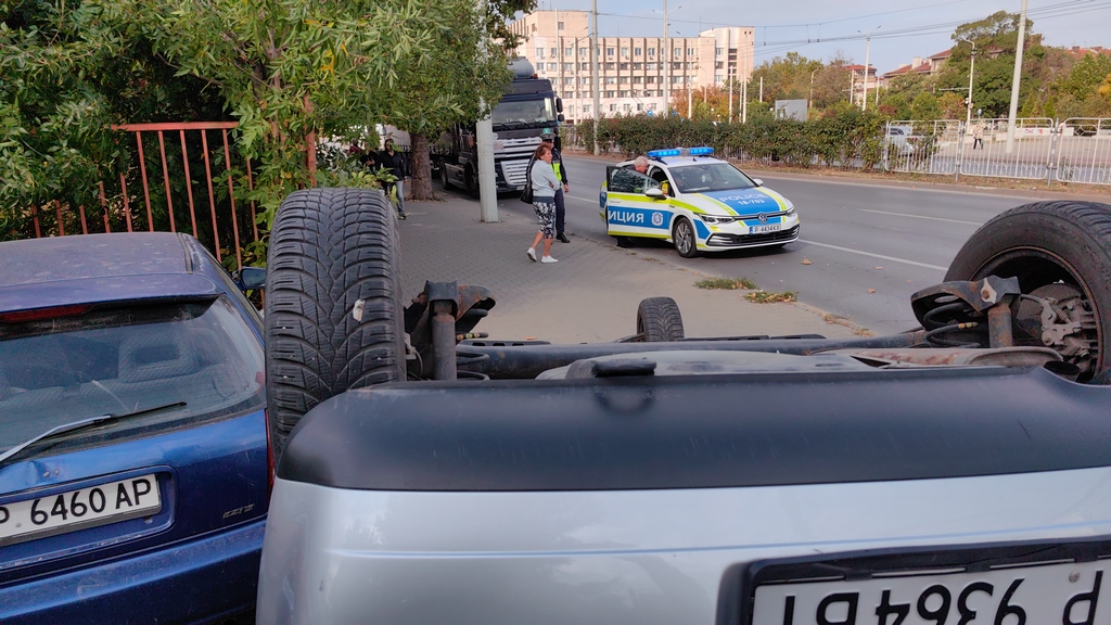 Автомобил се обърна по таван след удар в тролейбус /ВИДЕО/