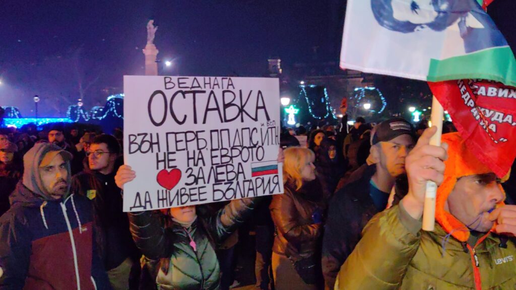 Протестиращите издигнаха плакати с надписи „Да спрем разграбването на държавата ни“, „Вън Пеевски от властта“, „Отпор срещу диктатурата“, „Държавата е наша, а не тяхна“, „Правосъдието е в кома“, „Оставка“, „Мафия“.