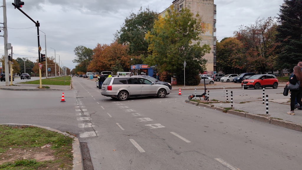 Пътен инцидент затруднява движението на кръстовището на МОЛ-а. По предварителна информация двама 16 годишни младежи са се движили с тротинетка в локалното платно в посока към центъра. На кръстовището навлизат и продължават движението си направо, като отнемат предимството на лек автомобил, който се движи в посока от МОЛ-а към Медика.