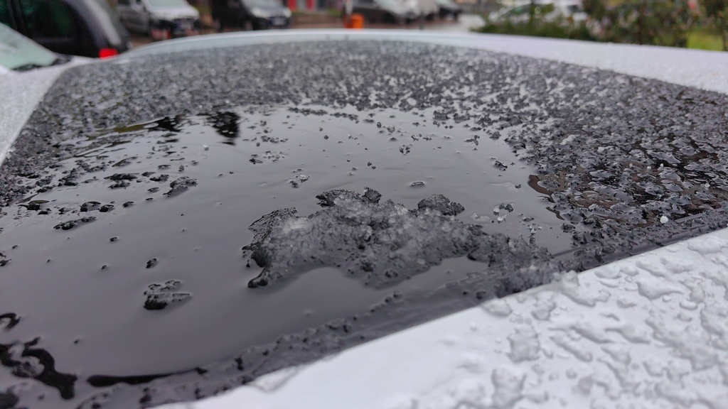 Макар и в рамките на около 10-тина минути, по автомобилите можеше да се събере и да се направи снежна топка. Явлението е леко необичайно за началото на месец април.