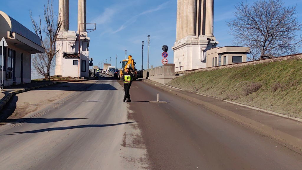 Решението бе взето на среща при областния управител днес преди обед. Заради спрения трафик се образуваха опашки от чакащи превозни средства – главно камиони, на територията преди качването на моста и по булевардите „България“ и „Тутракан“.