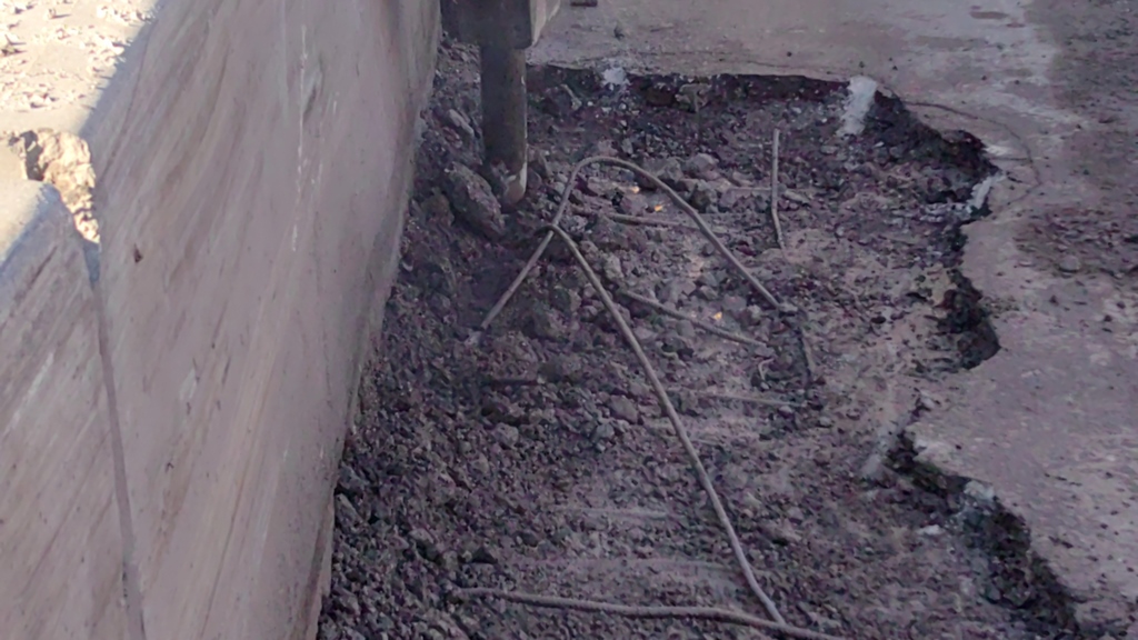 Едно от решенията, които бяха взети бе за аварийно запълване на огромните кратери по тясното трасе. Самото трасе е най-добре да се види във видеото и снимките. Коловози, дупки от двете страни, някои са изключително дълбоки, а други са доста коварни. Под напукания асфалт дебнат дълги арматурни прътове, които в даден момент просто изкачат от асфалта и се врязват в преминаващото МПС…..