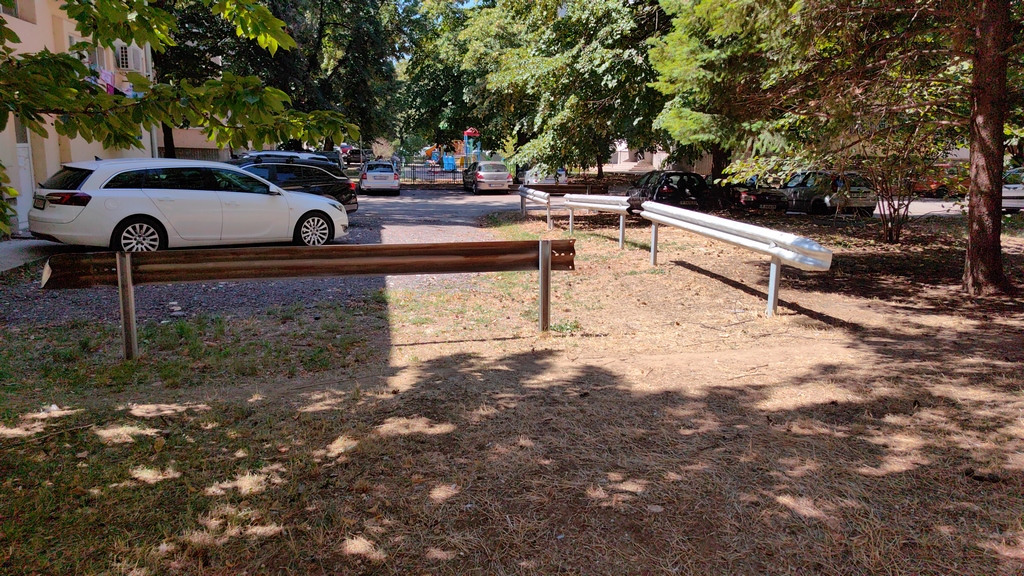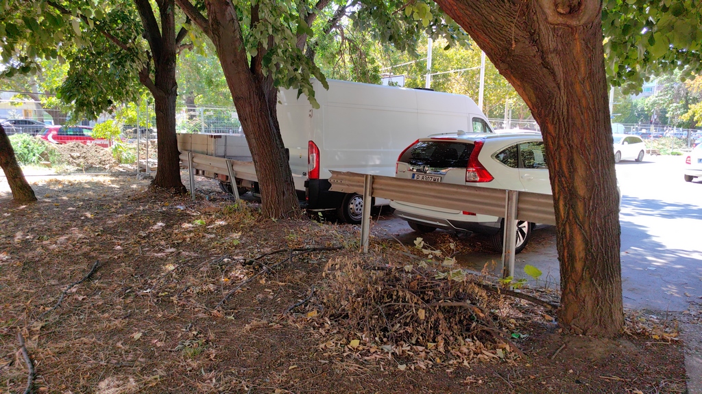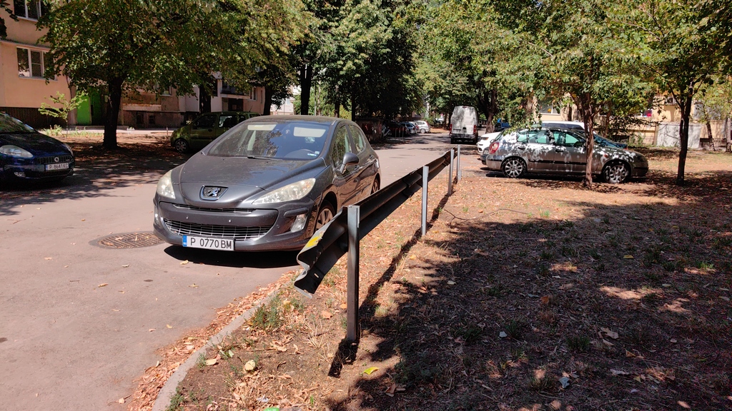 Няма нищо лошо, просто е изненадващо и впечатляващо. По този начин е обособен междублоков паркинг и на няколко места са изградени огради срещу автомобилите.