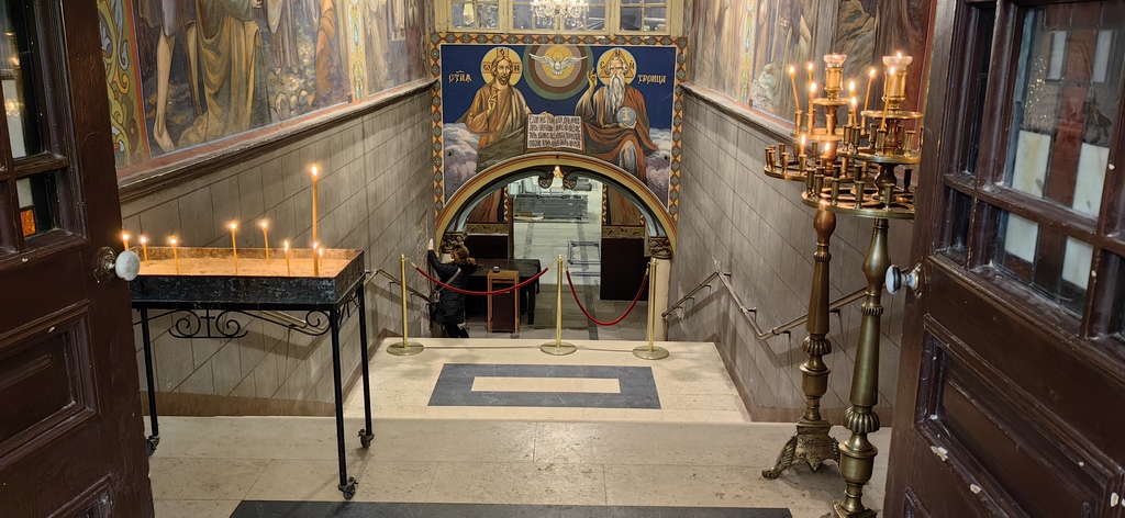Все пак катедралният храм функционира и който има потребност да запали свещ, може да го направи, но не там където е било досега, а само в предверието, където има нови обособени места. Достъпът надолу към църквата е ограничен.