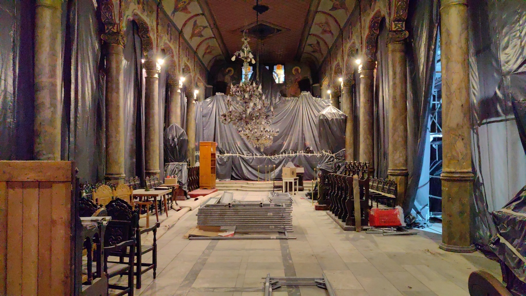 За съжаление през годините водата е прониквала и е увредила значително подпокривното пространство. Засега намеренията са да не се пипат стенописите, а работата да е единствено по таваните в църквата. Пространството изглежда неузнаваемо, тъй като всичко е опаковано в найлони- маси, столове, иконостас, гробове….