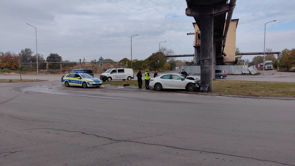 На място е установен лек автомобил „Тойота“ с русенска регистрация, управляван от мъж на 52 г., който при навлизане в кръговото кръстовище се е бил ударил челно в бетонна колона.