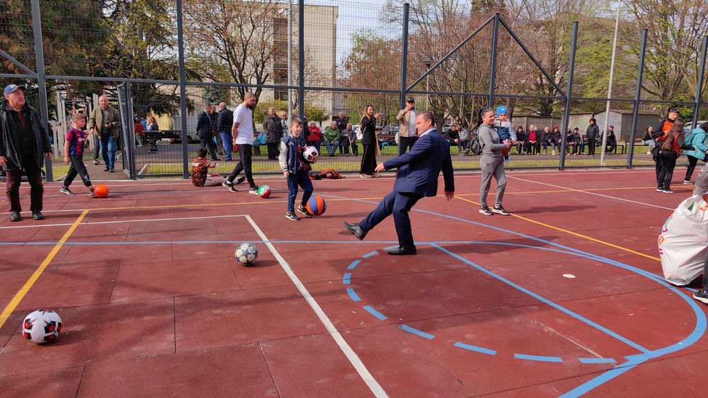 Новото спортно съоръжение беше официално открито на 14 април 2026 г. в присъствието на жители на квартала, деца и официални гости.