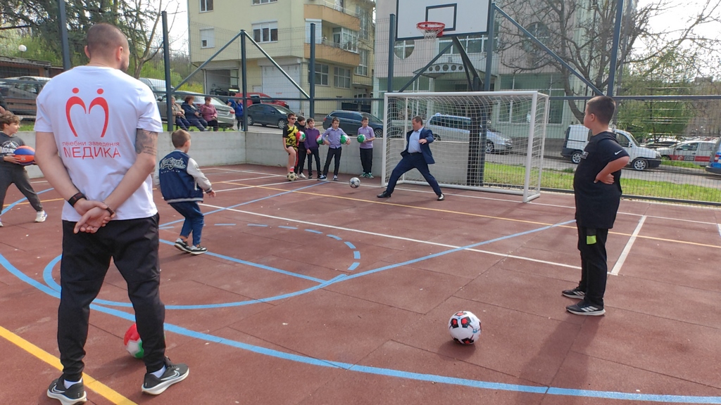 След официалното откриване кинезитерапевти от МЕДИКА демонстрираха упражнения на фитнес уредите и на комбинираното игрище, а десетки деца се включиха с ентусиазъм в спортните активности. Всички малки участници получиха подаръци – футболни и баскетболни топки, а за доброто настроение се погрижи младата певица Дария Стефанова.