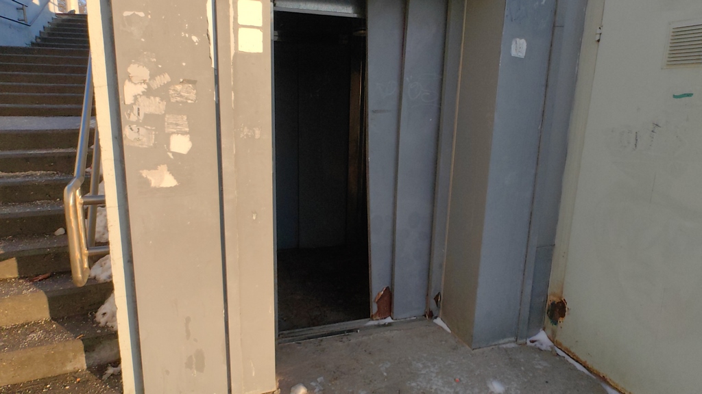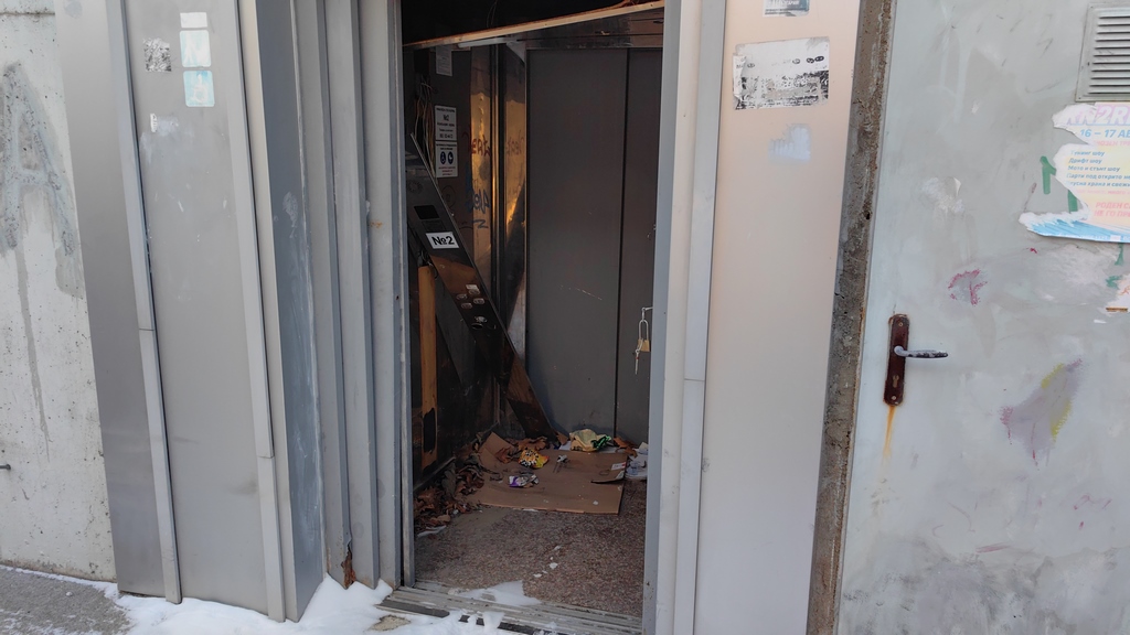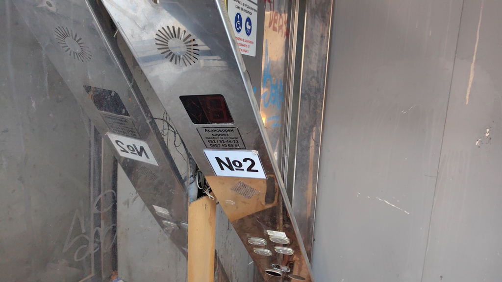 В най-плачевно състояние е механизмът до полицията. Разбит е и този асансьор, който е към спортната зала. Единственият, който все още е със затворени врати, е този, който е към Строителния техникум.