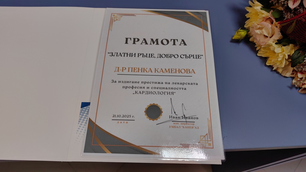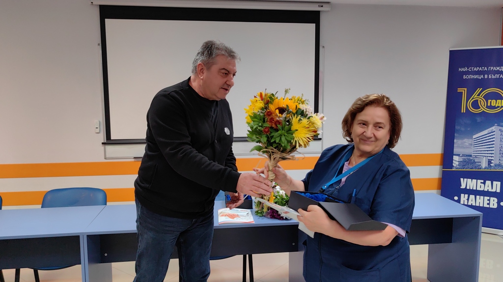 С грамота за издигане на престижа на лекарската професия и кардиологията и плакет бе наградена д-р Пенка Каменова, завеждащ отделението по кардиология.