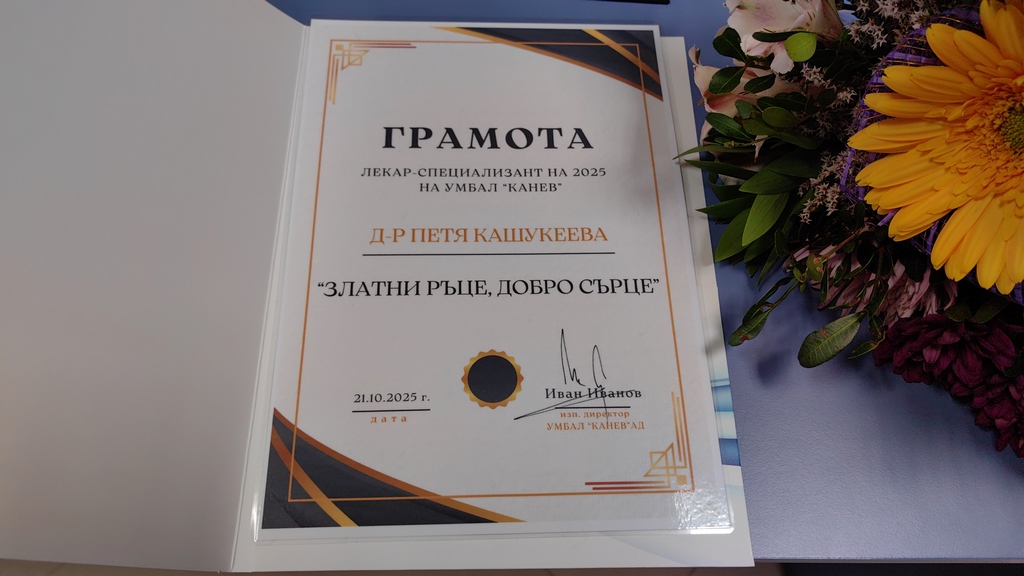 Отличията бяха връчени от изпълнителния директор Иван Иванов, който поздрави лекарите за Деня на българския лекар – 19 октомври, и им пожела да са здрави и все така всеотдайни към пациентите.