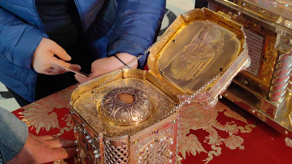 Това, което обясниха е, че мощите не се докосват с ръка. Могат да се целунат, а с ръце се докосва външната страна на ковчежето, в което те са изложени за поклонение.
