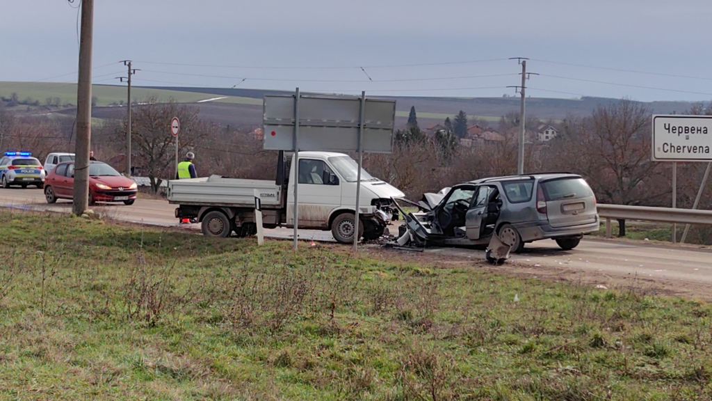 По първоначална информация лек автомобил „Рено“, управляван от възрастен мъж (82 г.) е навлязъл в насрещното платно и се е ударил челно в товарен автомобил „Фолксваген Транспортер“ (бордово камионче) управляван от водач на 59 години.